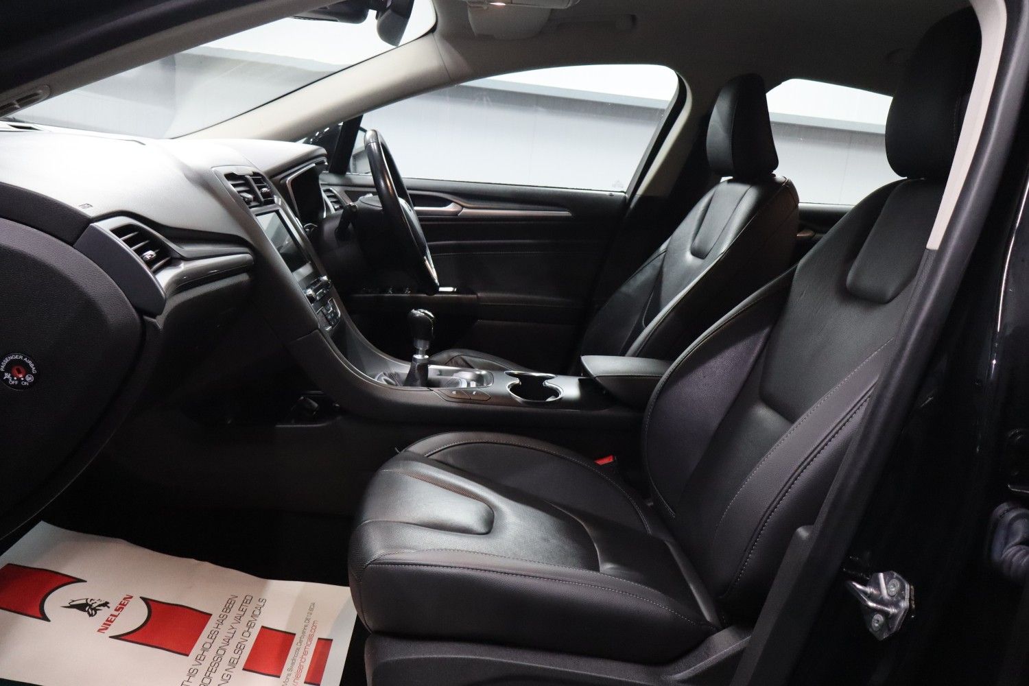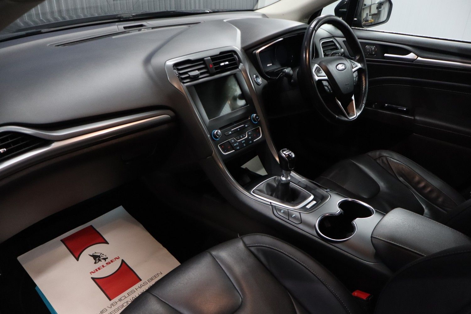 MH Motors presents this fantastic FORD Mondeo 1.5 TDCi Econetic Titanium - 5 Door, Manual 6-speed, Diesel, 2018, 99,687 Miles, Black in colour, MOT-09-2026, 2 Previous Owners, Insurance Group: 17.This eye catching Mondeo with economical 6-speed gearbox comes complete with a full ford service history and it is MOT'd until September 2026. It has power steering, electric windows and mirrors, front and rear parking sensors, CD player, central arm rest, remote central locking, air conditioning, sat nav, climate control, cruise control, bluetooth, AUX port, rear head rests, immaculate colour coded bodywork in black with a pristine full leather interior with heated front seats and a leather steering wheel.