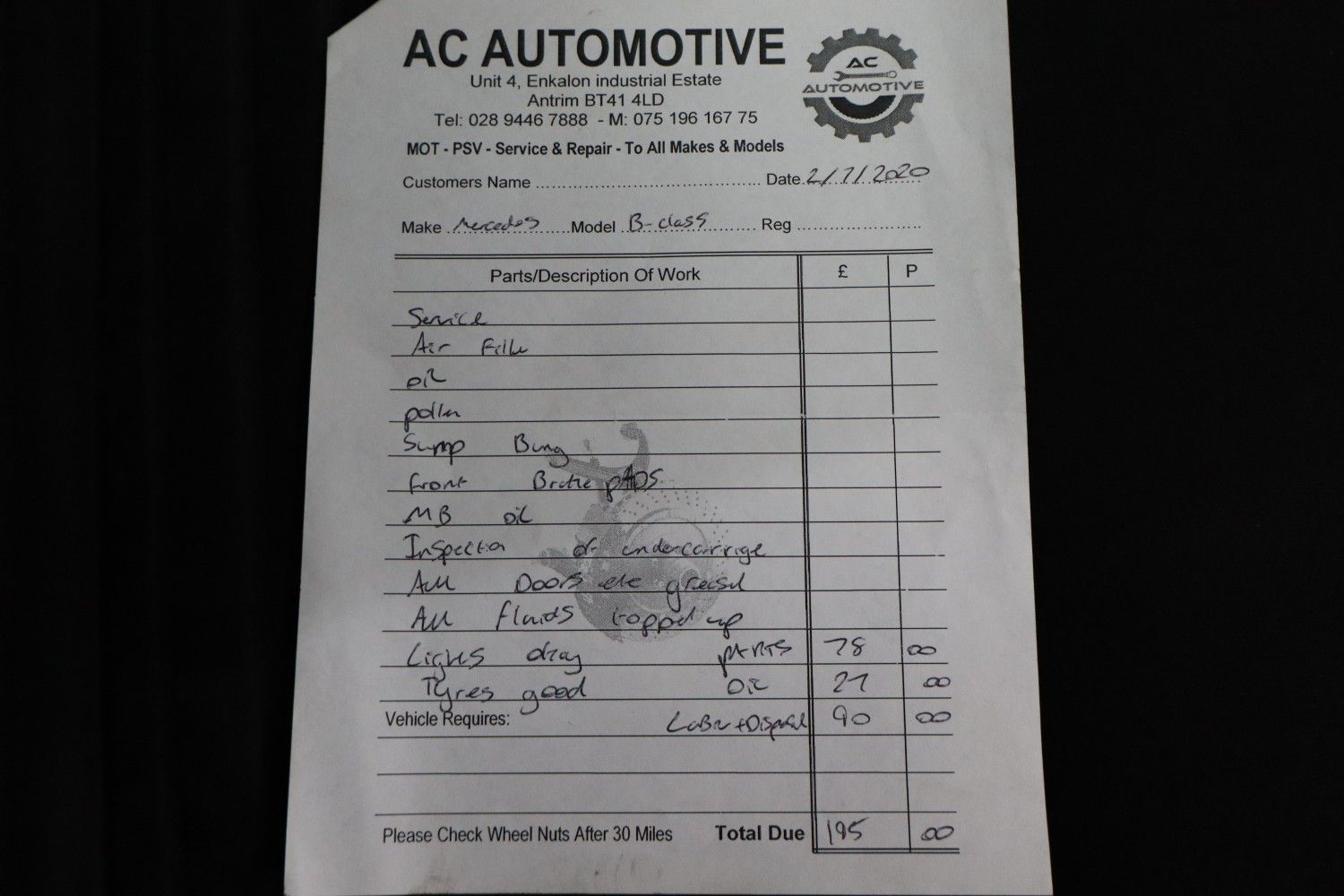 - 12 mths Road Tax £20.00