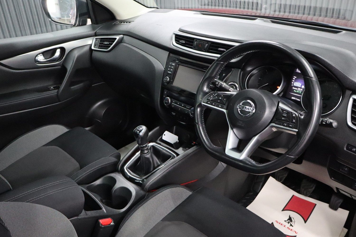MH Motors presents this brilliant NISSAN Qashqai 1.5 Dci N-Connecta - 5 Door SUV, Manual, Diesel, 2018, 69,888 Miles, Red in colour, MOT-08-2026, Insurance Group: 14.This fantastic jeep comes complete with 2 keys, full service history with 12 service records and it is MOT'd until August 2026. It features factory alloys, power steering, electric windows and mirrors, roof rails, front fogs, remote central locking, dual climate control, rear privacy glass, air conditioning, cruise control, bluetooth, USB/AUX ports, reversing camera, CD player, touch screen DAB radio, Sat. Nav., rear head rests, central arm rest, remote radio controls, parking sensors, colour coded bodywork in Red and pristine interior with a leather steering wheel.